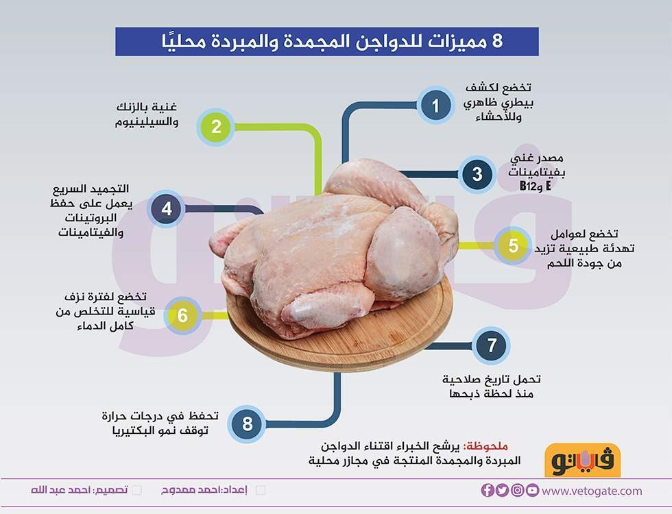 8 مميزات للدواجن المجمدة والمبردة محليًا | إنفوجراف الإثنين 15/فبراير/2021 - 06:32 م 2/15/2021 6:32:15 PM دجاج أحمد ممدوح شارك طباعة 18 حجم الخط شارك طباعة الدجاج المجمد الدواجن المبردة الدواجن المحلية