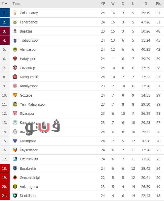 تعرف على ترتيب جالاتا سراي في الدوري التركي