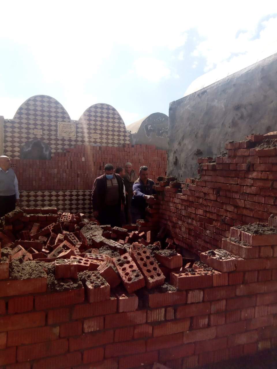 وأضاف إنه فى قرية كفر الترعة القديم تمت أعمال إزالة فورية لسور بناء مخالف على مساحة 55 مترا وارتفاع 3أمتار خارج الحيز العمرانى وتم اتخاذ اللازم قانونيا بمعرفة الشرطة والنيابة العسكرية..