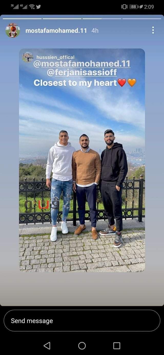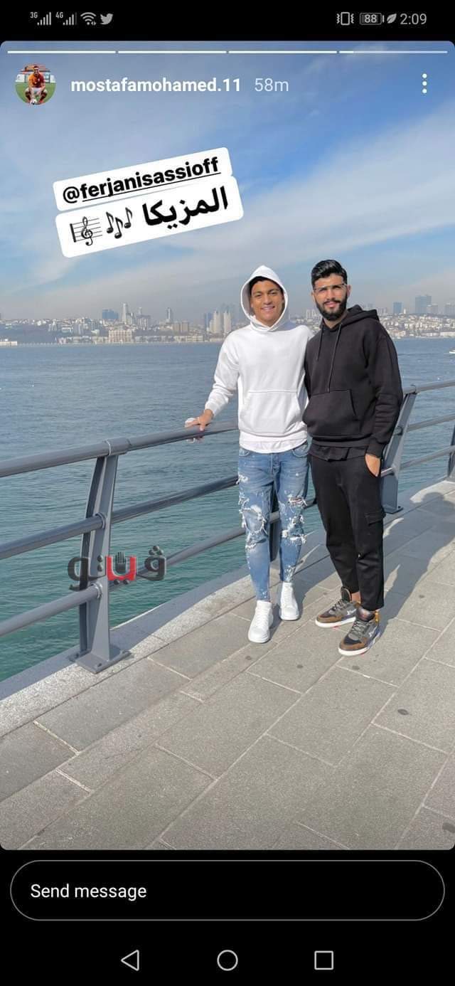 نشر مصطفى محمد لاعب جالاتا سراي التركي، صورة بصحبة فرجاني ساسي لاعب الزمالك، عبر موقع التواصل الاجتماعي "إنستجرام"، وذلك خلال زيارة الأخير لتركيا.