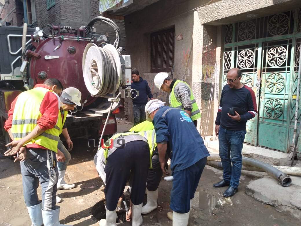 المعنية بحي جنوب الجيزة بأشراف تيسير عبد الفتاح رئيس الحي بحملة تطهير غرف تصريف