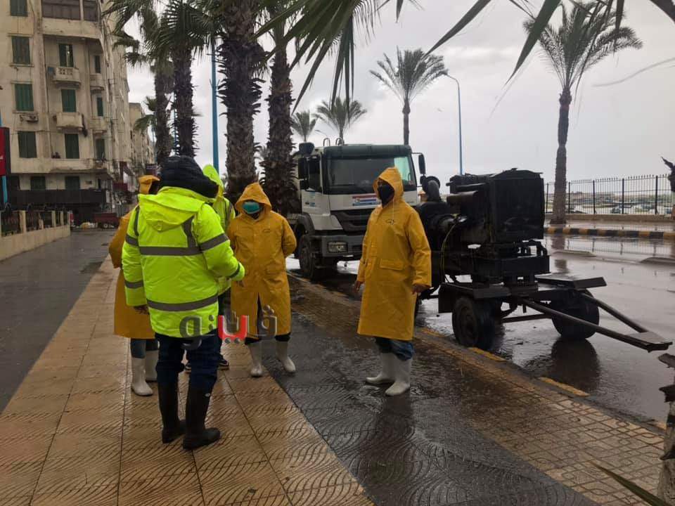 وتم متابعة طريق الكورنيش بداية من مكتبة الاسكندرية ومنطقة الجمرك المنشية وحتى قلعة قايتباي لم يتم توثيق اي تجمع للمياه