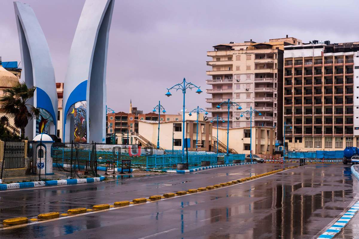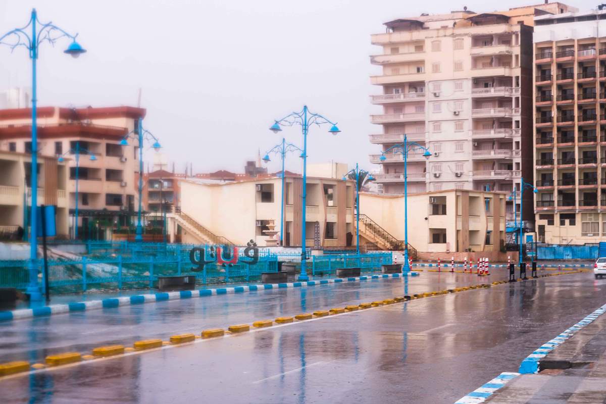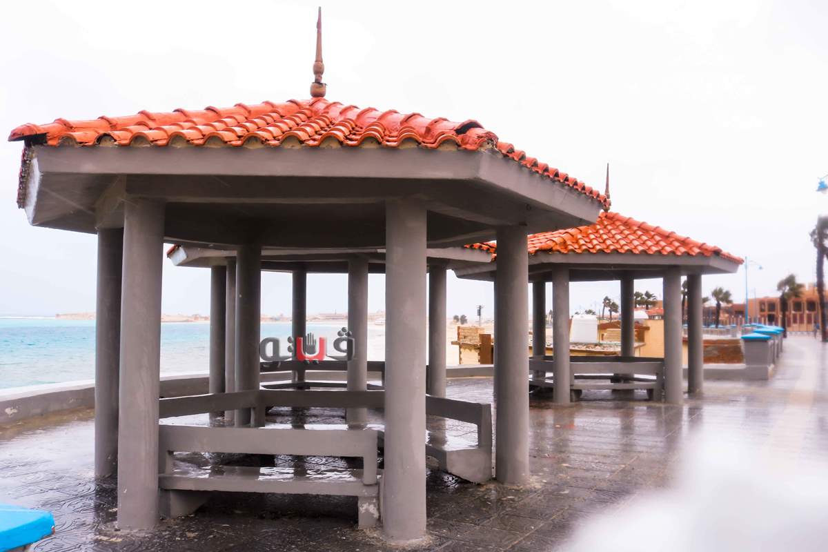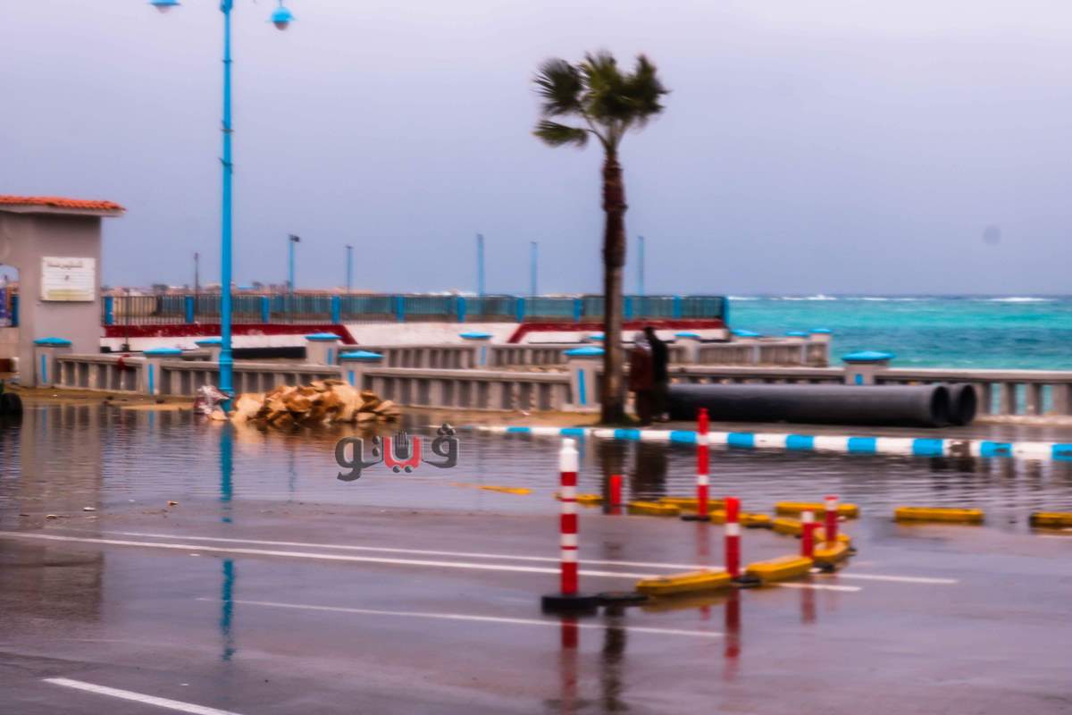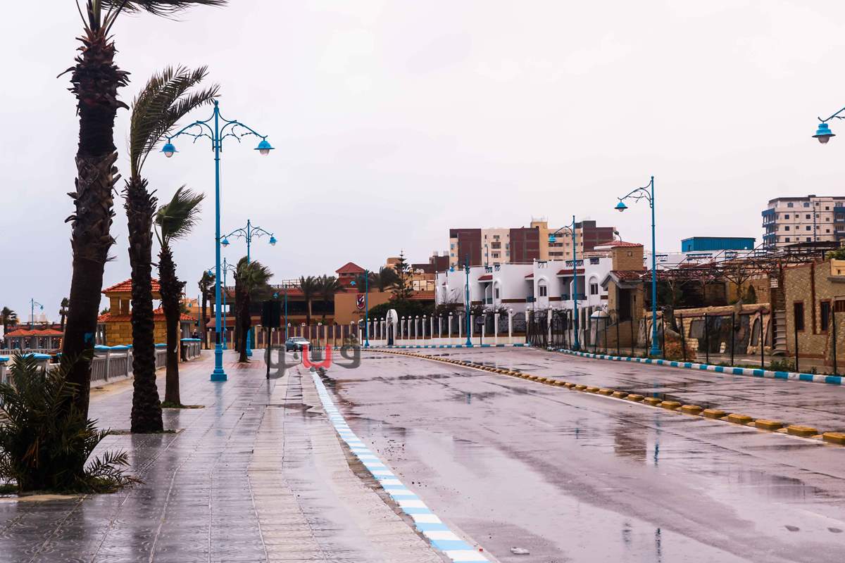 وشهد الكورنيش خلو تام من المواطنين حيث إلتزام المواطنين المنازل بسبب الأمطار الغزيرة والصقيع الذي ضرب المدينة، كما شهدت إرتفاع فى منسوب الأمواج بشكل ملحوظ مع تغيير لون البحر إلي اللون البني نتيجة ترسبات مياه الأمطار المتربة إلي البحر.