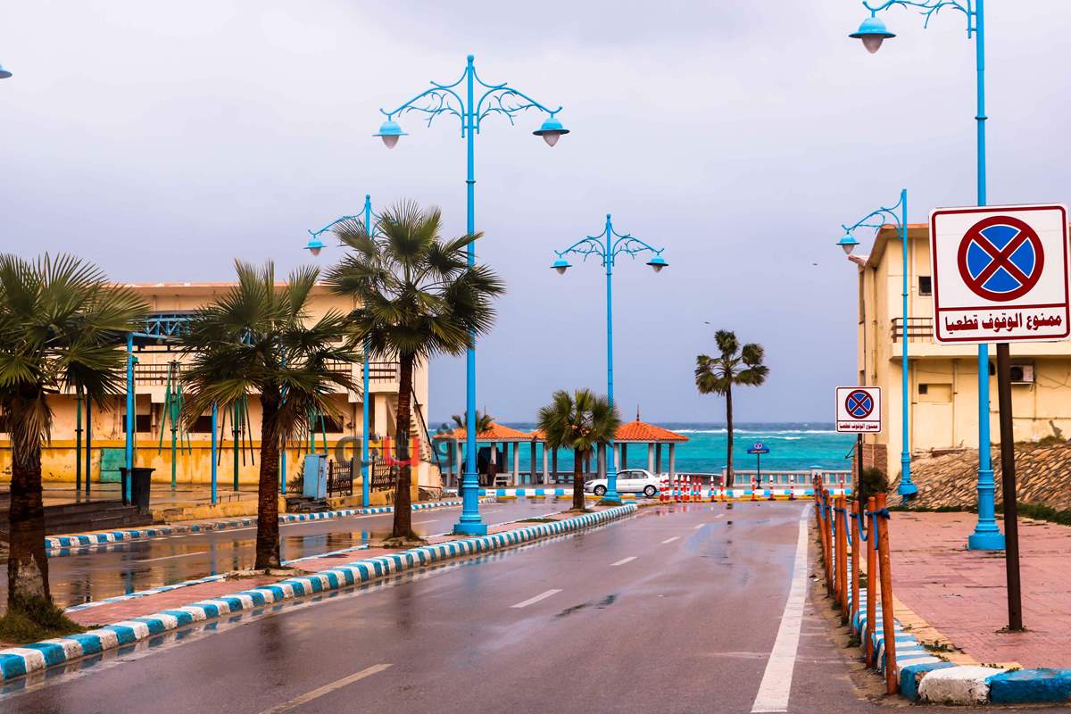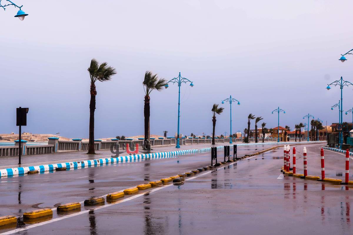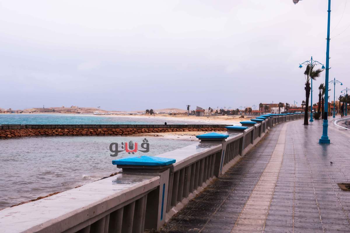 شهد كورنيش مدينة مرسى مطروح خلو تام من المواطنين تزامنا مع سقوط الأمطار الغزيرة التي ضربت مطروح ضمن نوة أليكسا2 والتي أعلنت عنها هيئة الأرصاد الجوية.