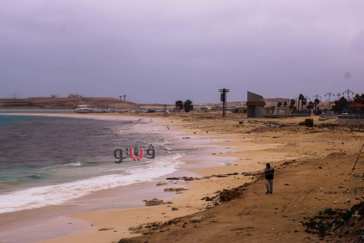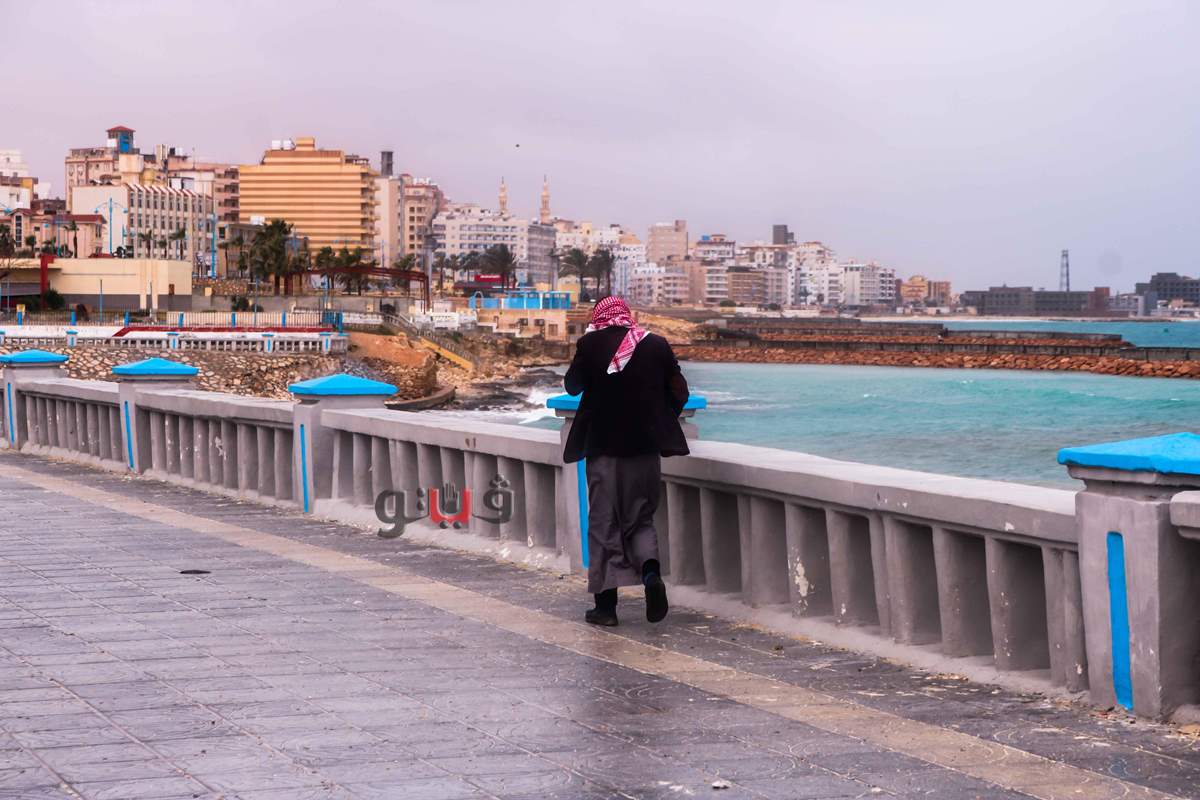 كورنيش مطروح مع نوة أليكسا2.. «خلو المواطنين وارتفاع الأمواج» | صور