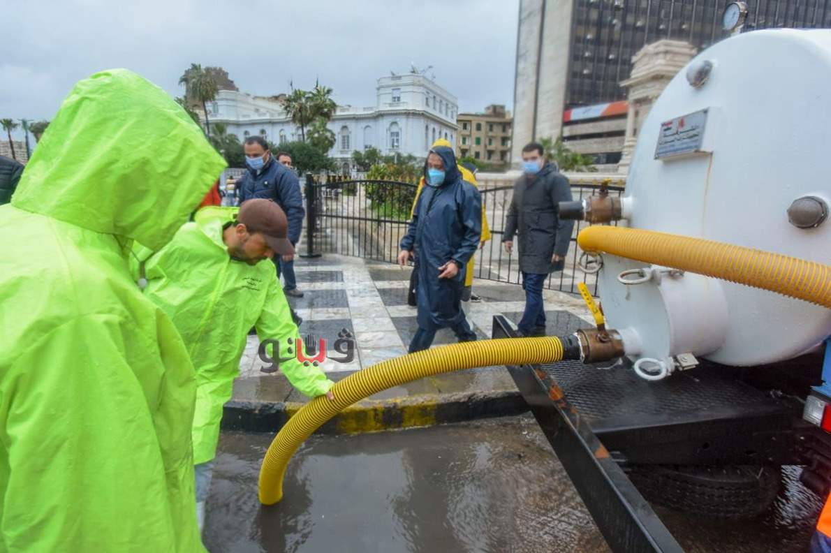 محافظ الإسكندرية يتابع أعمال تصريف مياه الأمطار
