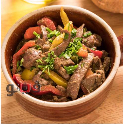نصف كيلو كبدة طازجة مقطعة إلى شرائح رفيعة أو متوسطة حسب الرغبة.