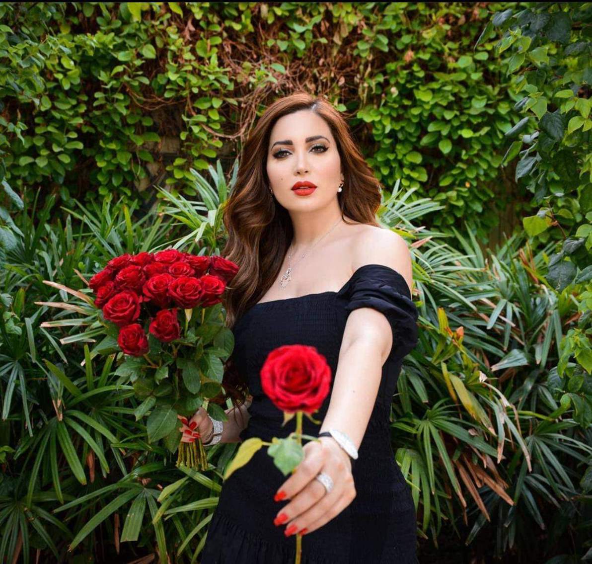 وظهرت نسرين طافش بإطلالة جذابة مرتدية فستان أنيق بالون الأسود، وبيديها بعض الورود الأحمر، وعلقت طافش على الصور: "نحن فراغ لا يملؤنا إلا الحب، نحن عتمة لا يضيئنا إلا العشق".