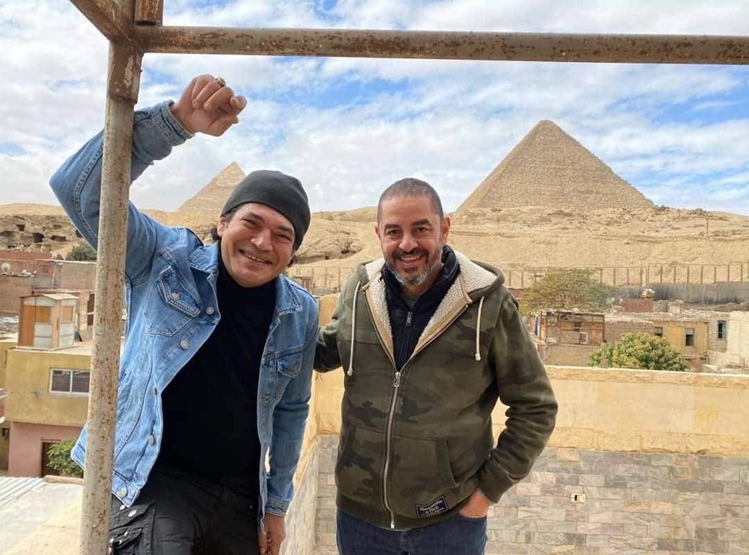 كما ظهر في الكواليس الفنان باسم سمرة برفقة أحمد شفيق في منطقة الأهرامات بالجيزة.