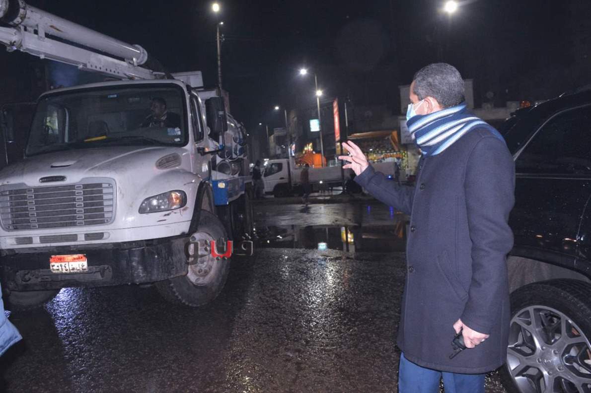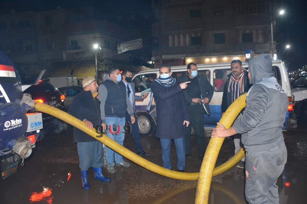محافظ الغربية في جولة مسائية يتابع أعمال كسح مياه الأمطار| صور