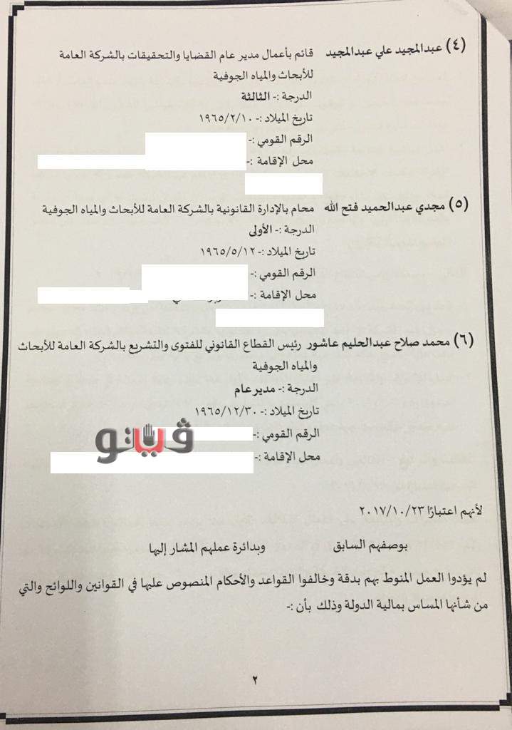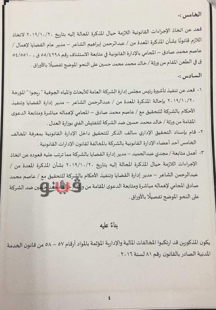 قررت وزارة العدل في القضية رقم 23 لسنة 63 قضائية عليا إحالة رئيسي القطاع القانوني الحالي والسابق ومديري القضايا ومحاميين بالشركة العامة للأبحاث والمياة الجوفية "ريجوا" للمحاكمة التأديبية العاجلة لرتكابهم مخالفات مالية وإدارية وقانونية.