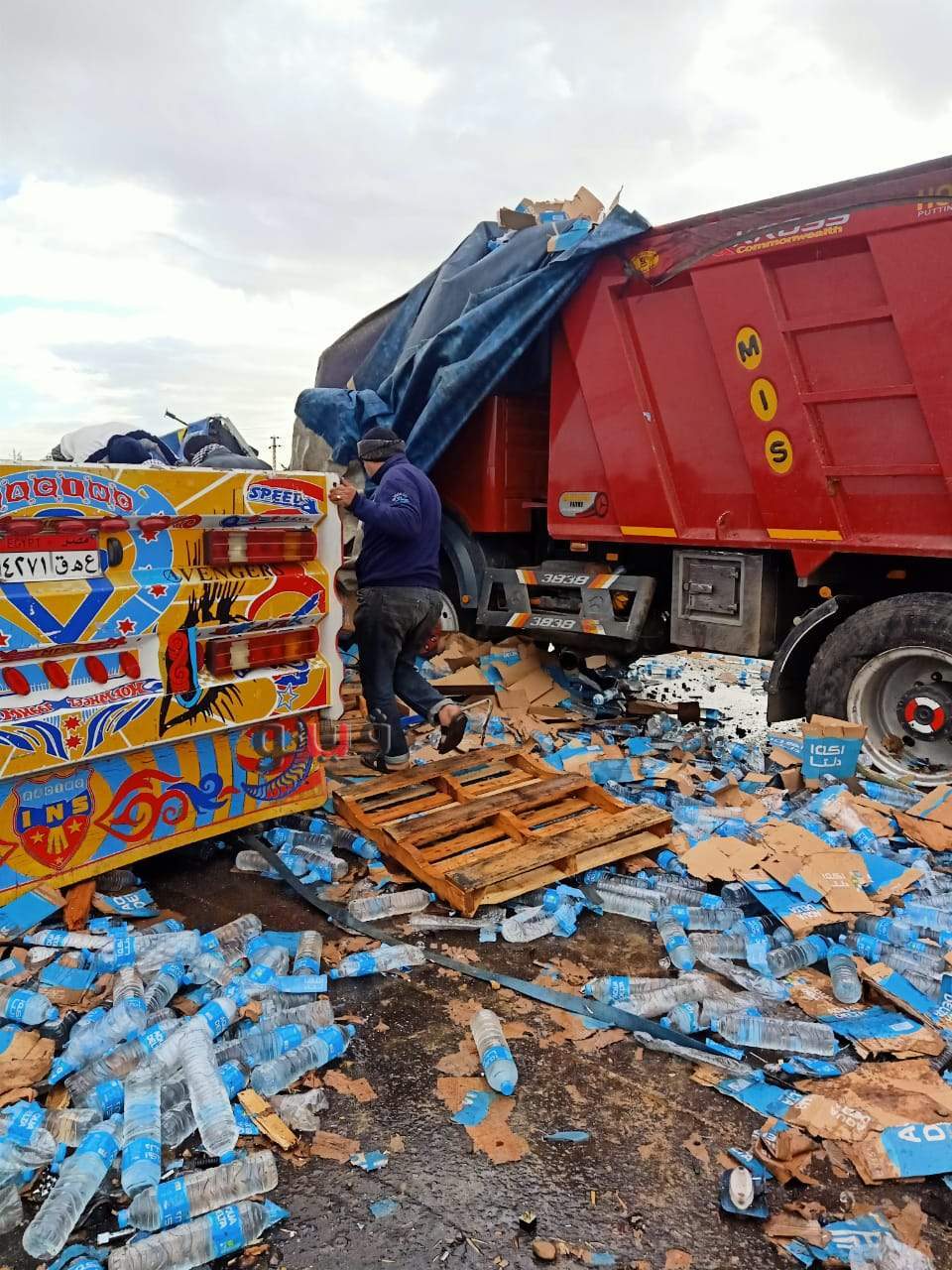 أصيب اليوم الأربعاء، ٣ أشخاص في حادث تصادم مقطورتين نقل ثقيل بطريق "الإسماعيلية القاهرة الصحراوي" حيث كانت إحدى المقطورتين محملة بالسن والأخرى بعبوات مياه معدنية.