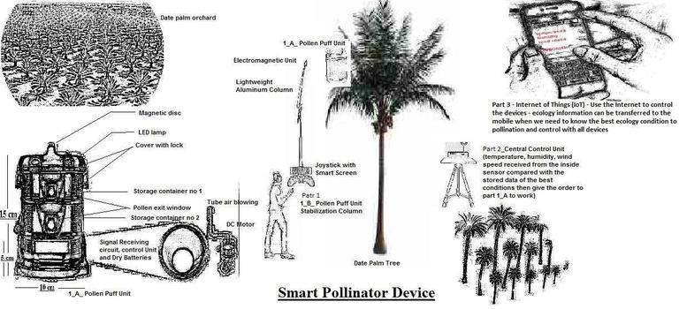 ويشرح بيان أصدرته إدارة الجائزة تفاصيل الاختراع، وهو عبارة عن وحدة لنفث حبوب اللقاح (PPU) يتم وضعها على رأس النخلة باستخدام آداه خاصة، وتكون هذه الوحدة مزودة بمستشعرات قياس الحرارة والرطوبة، لترسل بدورها بيانات إلى وحدة تحكم مركزية حول التوقيت المناسب لنفث حبوب اللقاح.