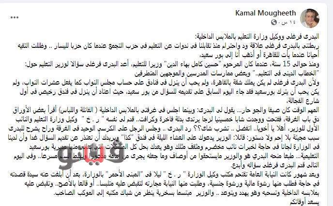 من رحيل البرلماني السابق البدري فرغلى، كشف الخبير التربوي كمال مغيث تفاصيل