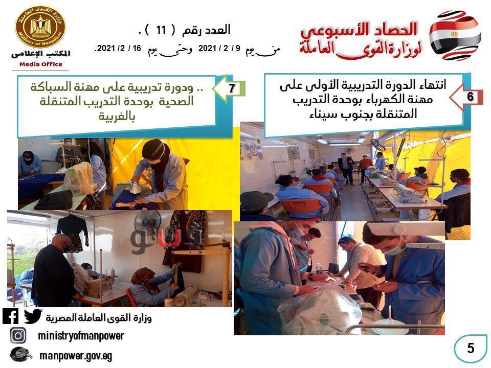 وامتد حصاد الأسبوع ليشمل تعيين 5 آلاف و572 شاباً، وصرف منح للرعاية الاجتماعية والصحية للعمالة غير المنتظمة المسجلة بمديريات القوى العاملة بمحافظات سوهاج ومطروح والفيوم وشمال سيناء وجنوب سيناء وأسيوط والجيزة، بلغت 7 ملايين و333 ألف جنيه، والتفتيش على 3141 منشأة لتطبيق أحكام القانون، فضلاً عن استخراج 3 آلاف و333 شهادة قياس مستوى المهارة، ورخصة مزاولة الحرفة لـ 3 آلاف و333 عامل.