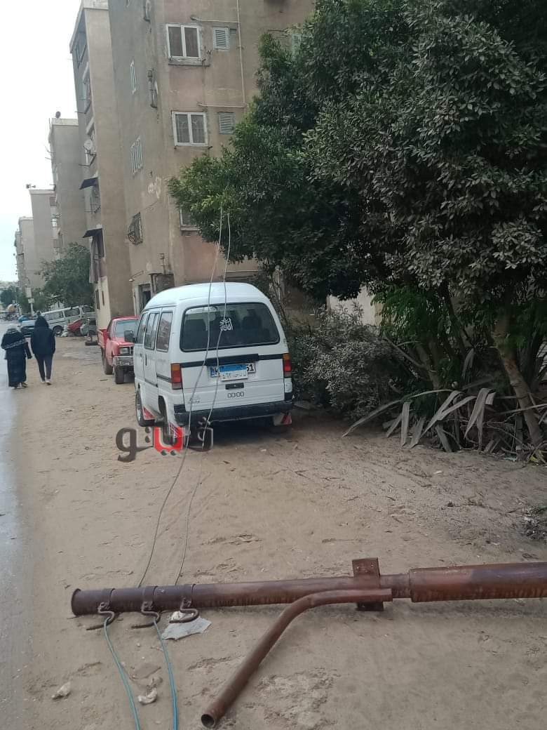 سقوط عامود إنارة بسبب شدة الرياح بالقليوبية