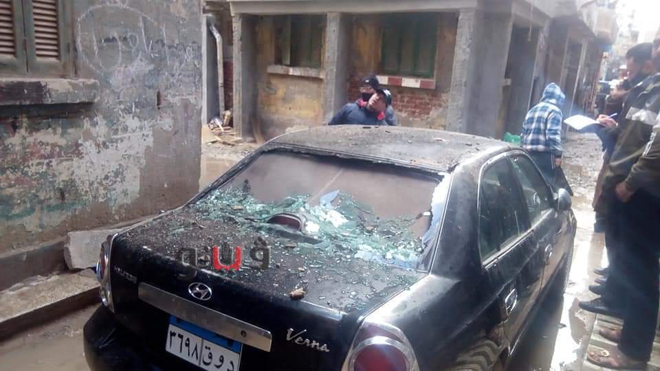 سقوط بلكونة عقار في المنصورة بسبب سوء الطقس | صور