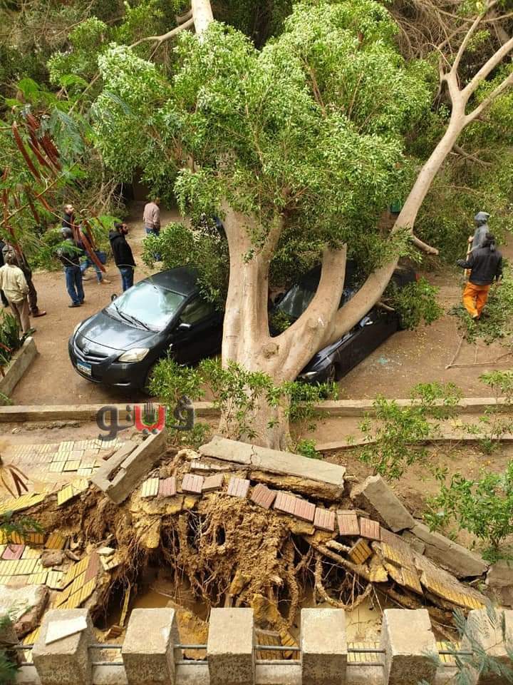 حيث شعر بعض سكان المعادي بهزة أرضية مصحوبة بضجيج فى الساعات الأولى من صباح، الأربعاء، اعتقد البعض وصول عاصفة أليكسا، والتي تسببت في سماع أصوات غريبة غير مسبوقة سمعها، لكن حقيقة الصوت هو انتزاع جذور أقدم أشجار المعادي على إحدى السيارات المتواجدة بالشارع.
