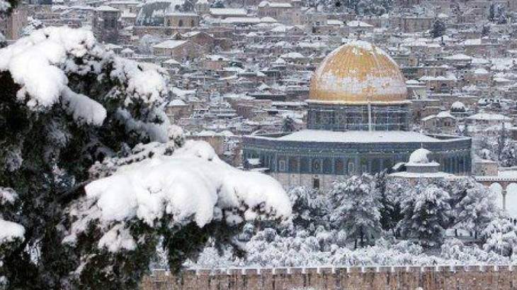 الثلوج تزين باحات المسجد الأقصى المبارك| فيديو