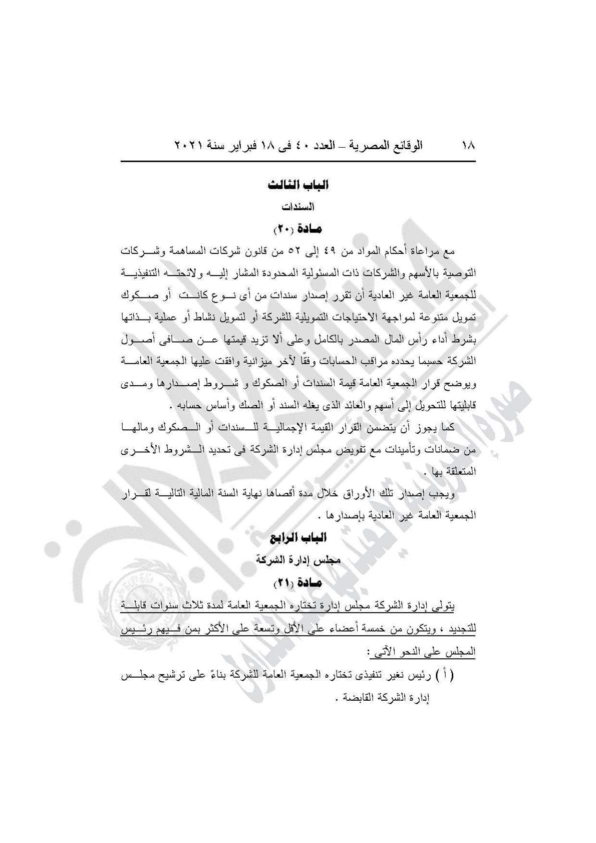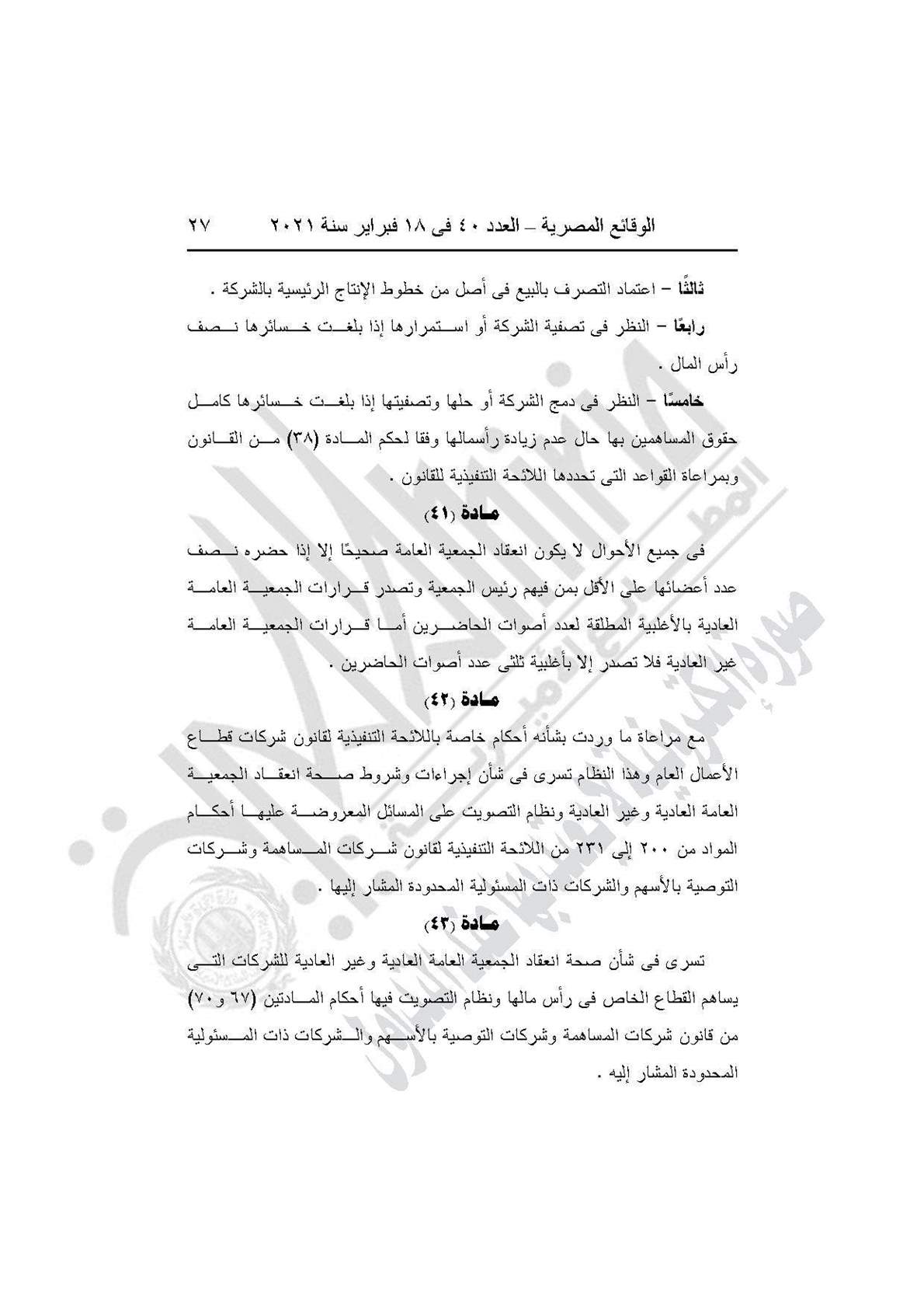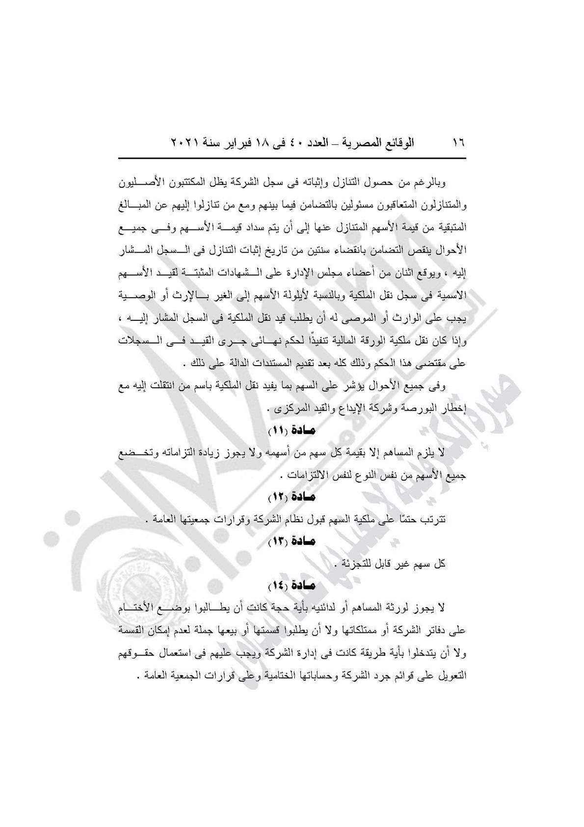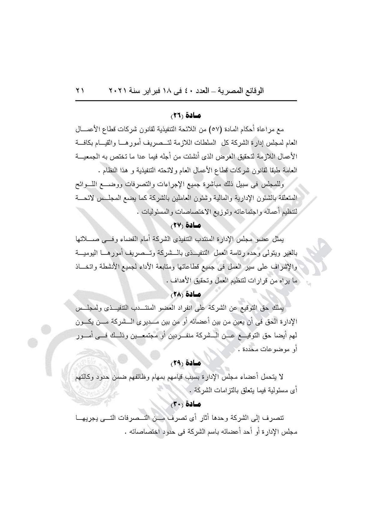 ويجوز للشركة أن تكون لها مصلحة أو تشترك بأى وجه من الوجوه مع الهيئات التى تزاول أعمالاً شبيهة بأعمالها أو التى قد تعاونها على تحقيق غرضها فى مصر أو فى الخارج، وكذا الاشتراك فى تأسيس الشركات الخاضعة لأحكام القانون.
