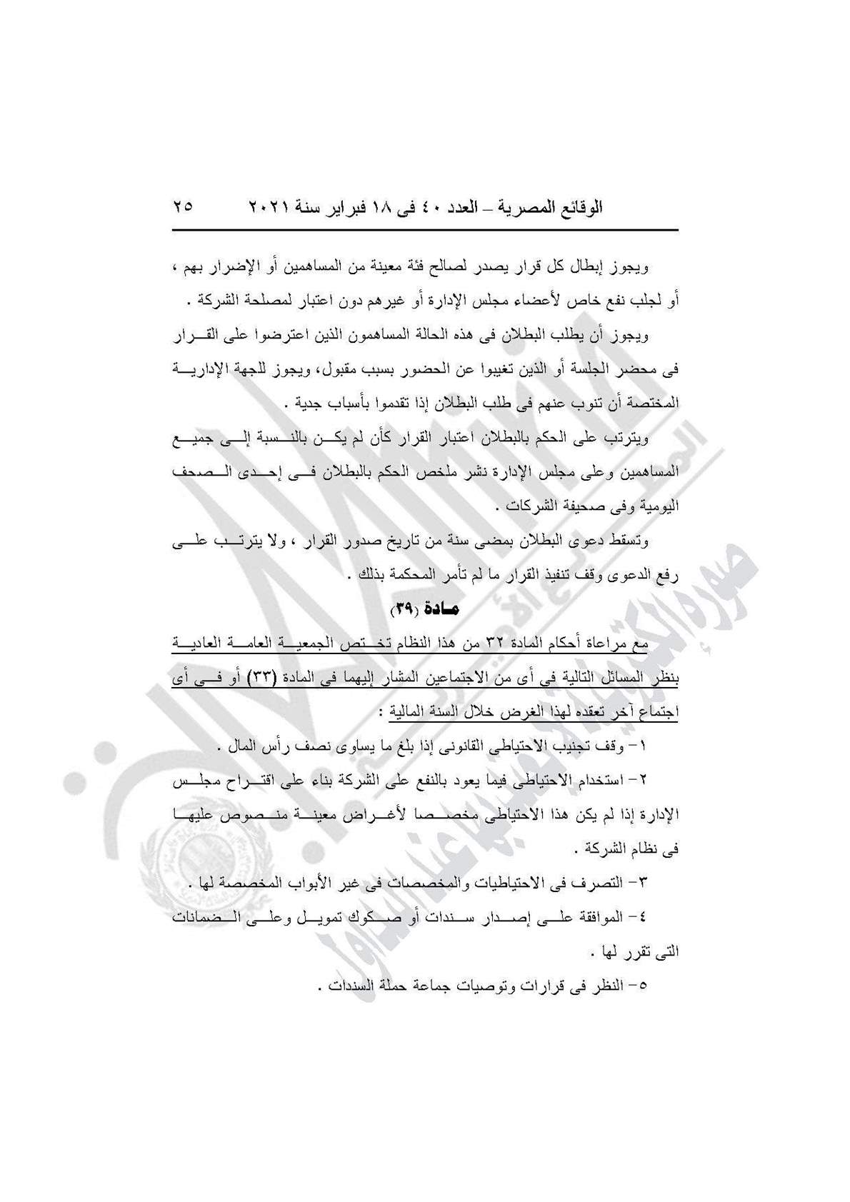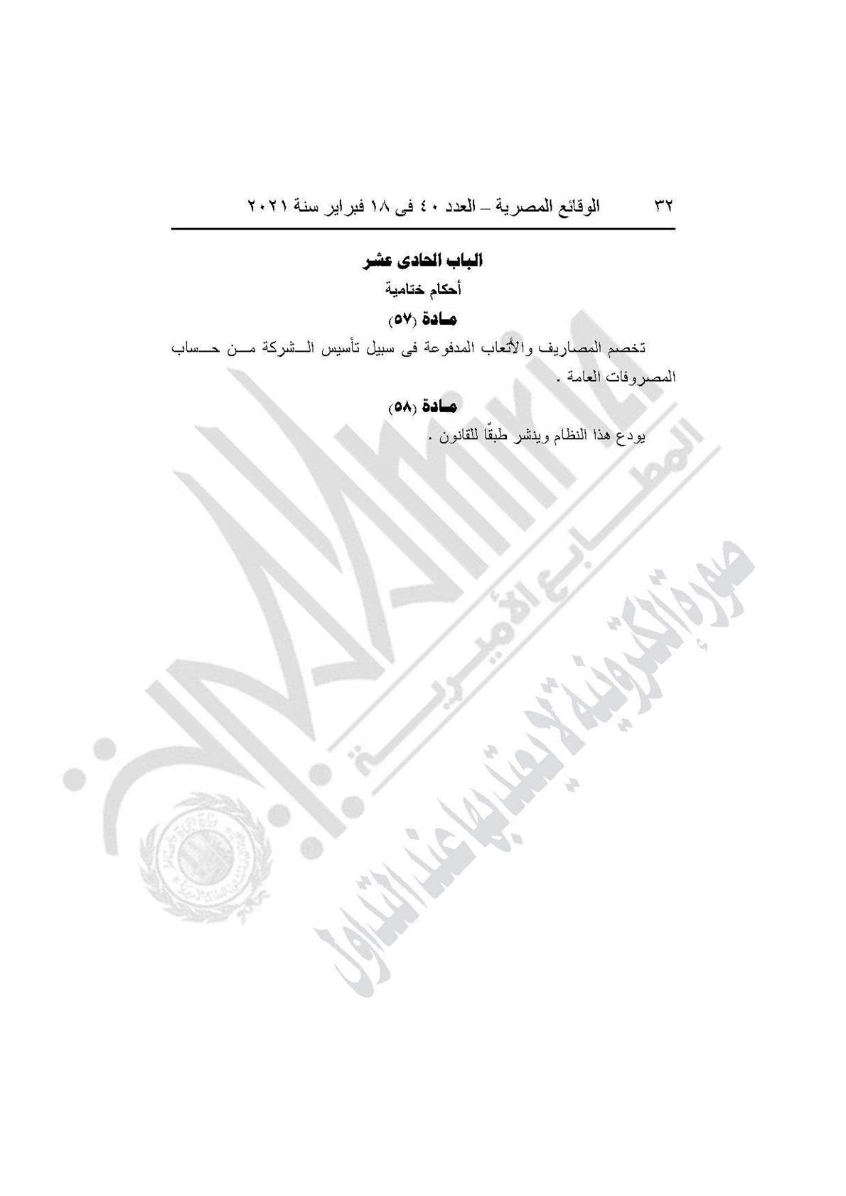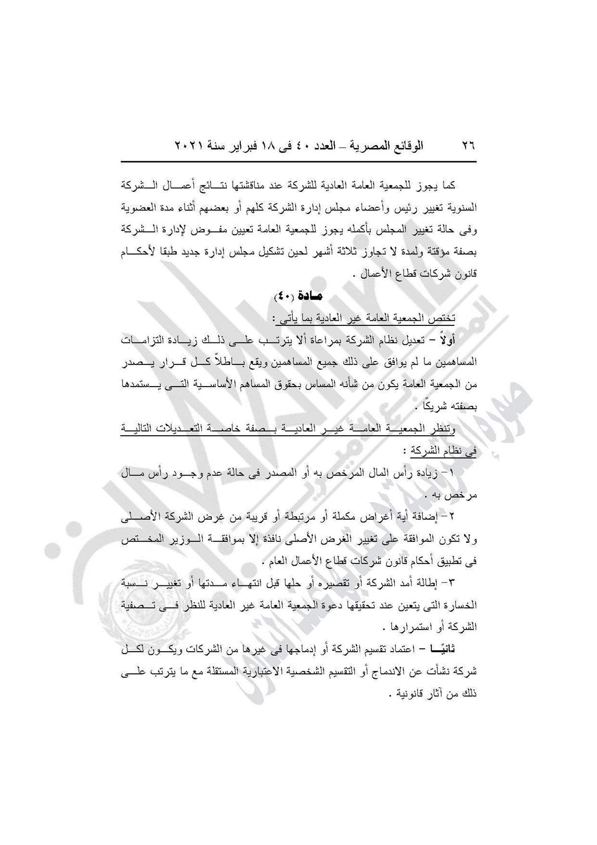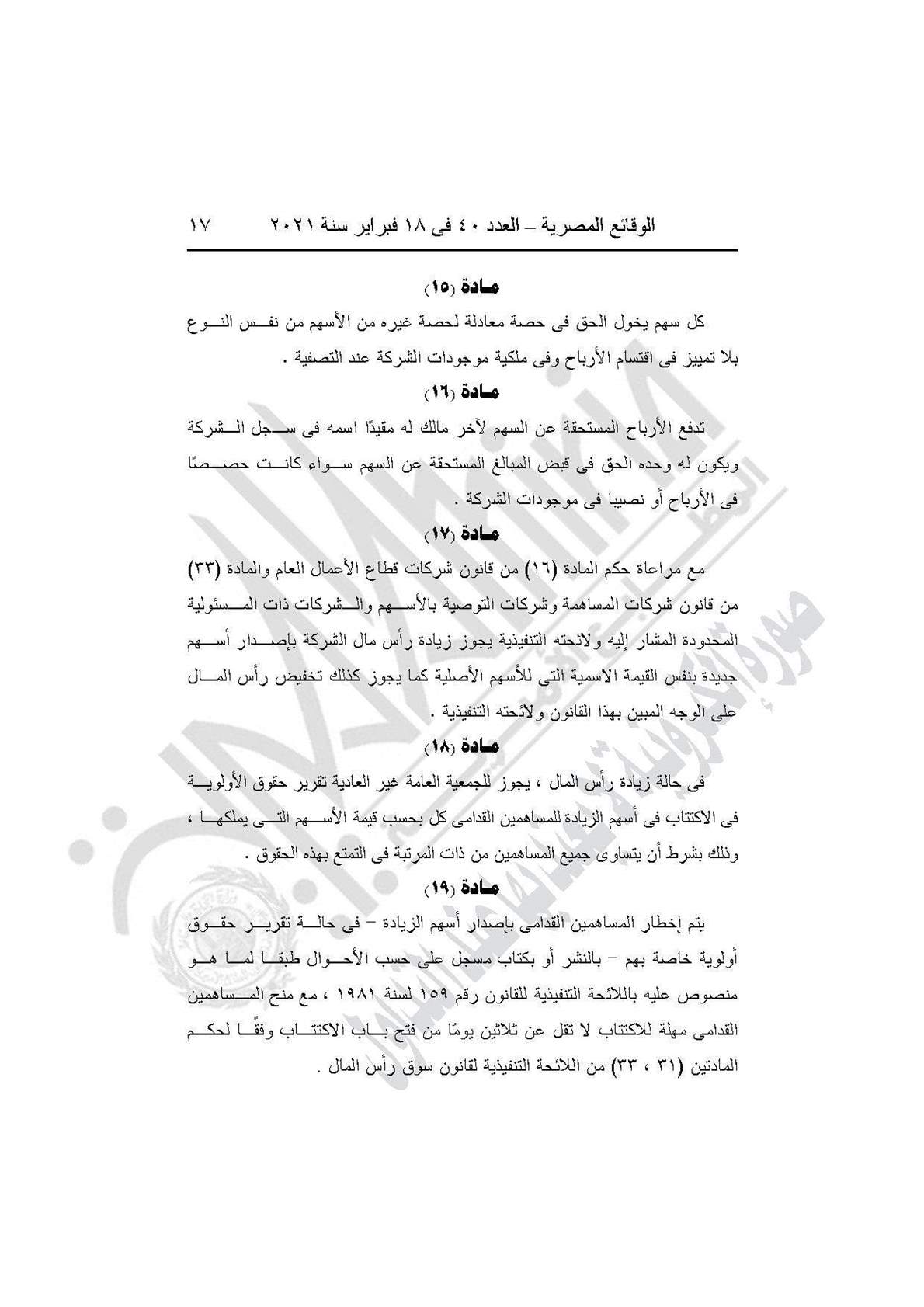 ويجوز للشركة أن تكون لها مصلحة أو تشترك بأى وجه من الوجوه مع الهيئات التى تزاول أعمالاً شبيهة بأعمالها أو التى قد تعاونها على تحقيق غرضها فى مصر أو فى الخارج، وكذا الاشتراك فى تأسيس الشركات الخاضعة لأحكام القانون.