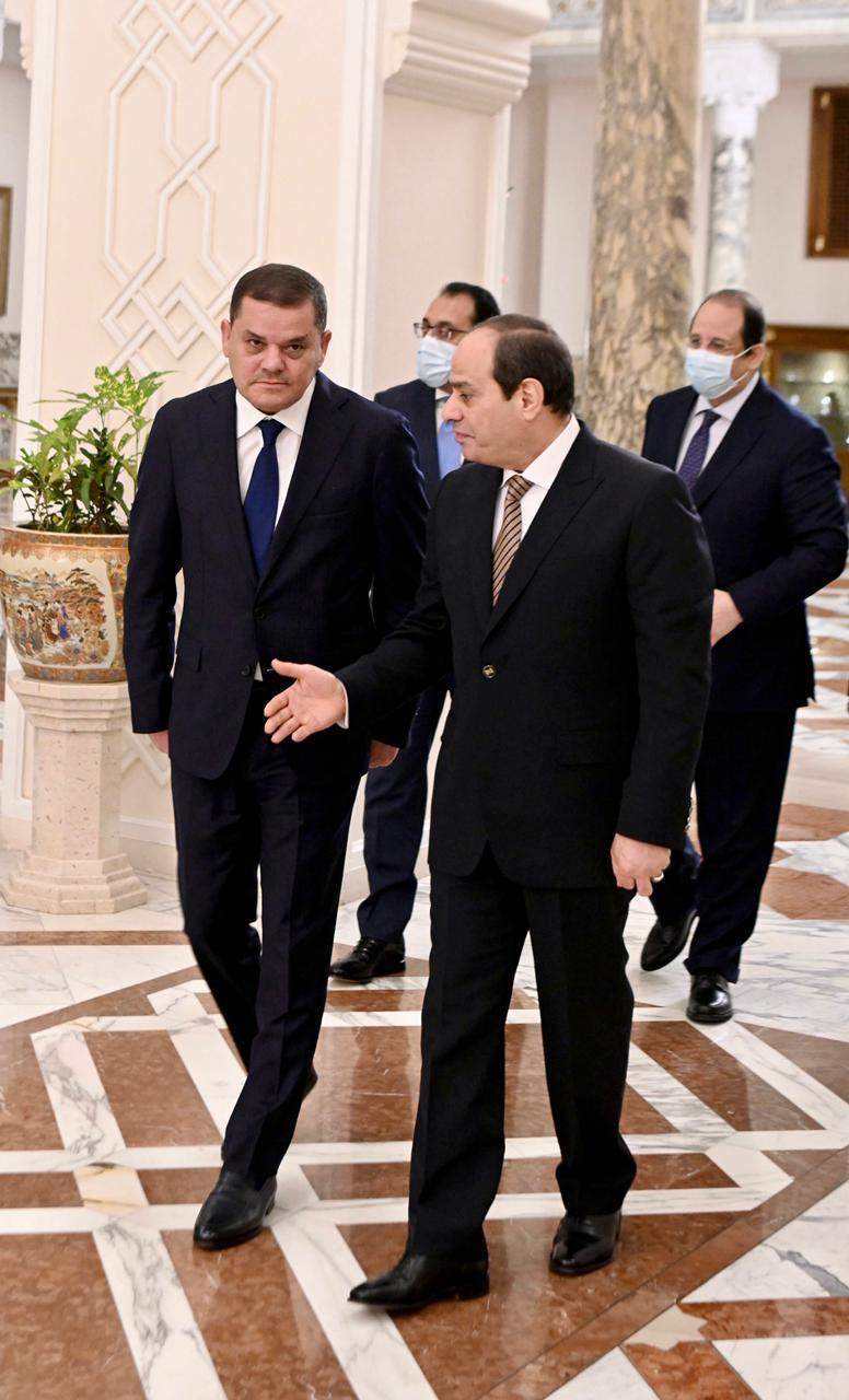 كما أكد الدبيبة، أن ليبيا حكومةً وشعباً تتطلع إلى إقامة شراكة شاملة مع مصر بهدف استنساخ نماذج ناجحة من تجربتها التنموية الملهمة التي تحققت خلال السنوات الماضية بقيادة ورؤية السيد الرئيس، خاصةً فيما يتعلق باستعادة الأمن والاستقرار وانطلاق عملية التنمية والإصلاح.