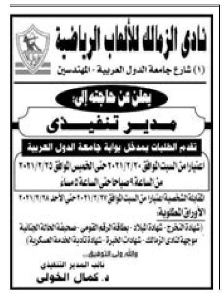 وقامت إدارة النادي بنشر إعلان رسمي في إحدى الصحف القومية للإعلان عن حاجة النادي إلى مدير تنفيذي جديد حيث تم توقيع الإعلان من الدكتور كمال الخولي نائب المدير التنفيذي الحالي.