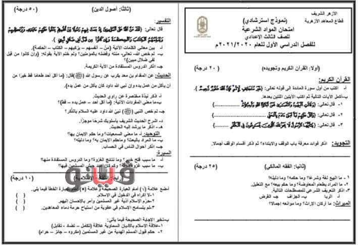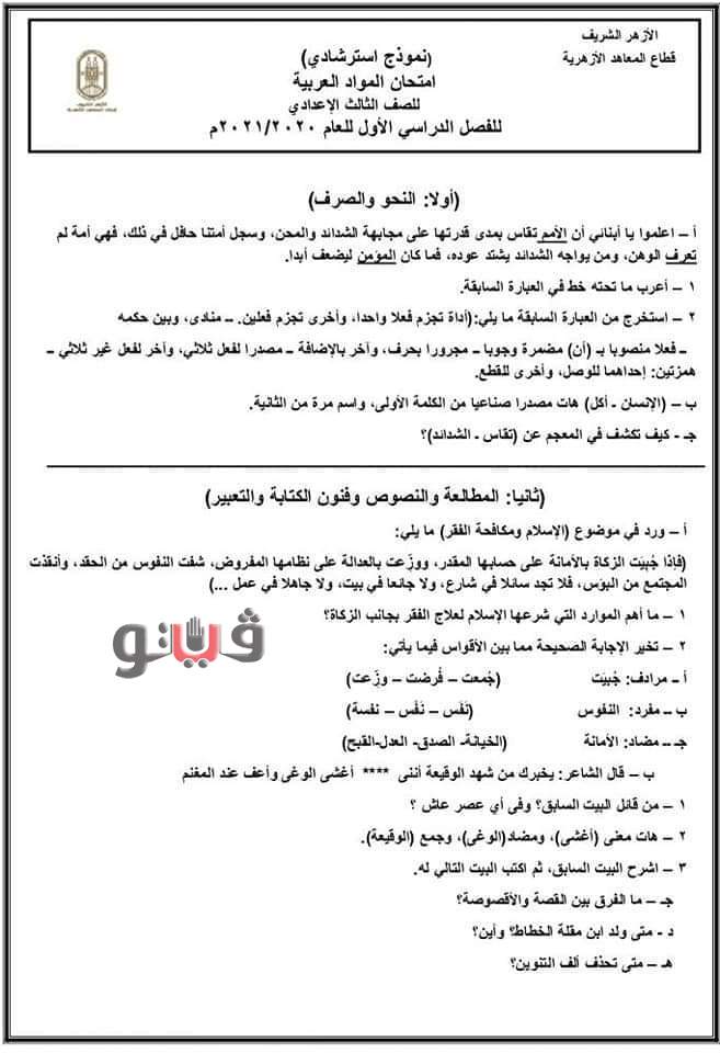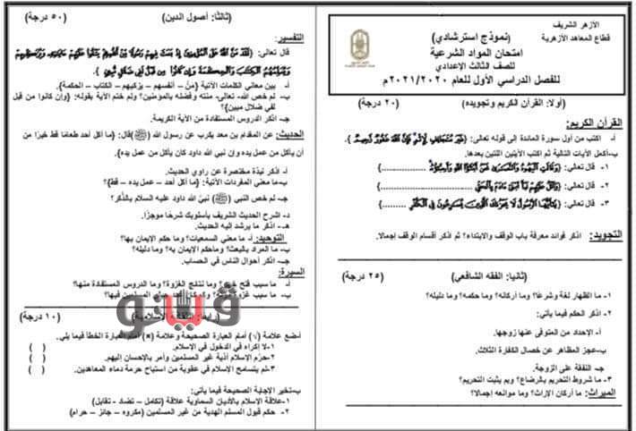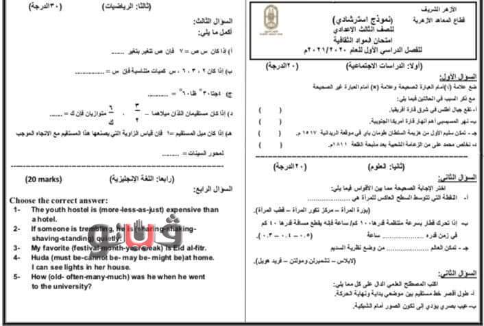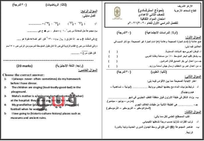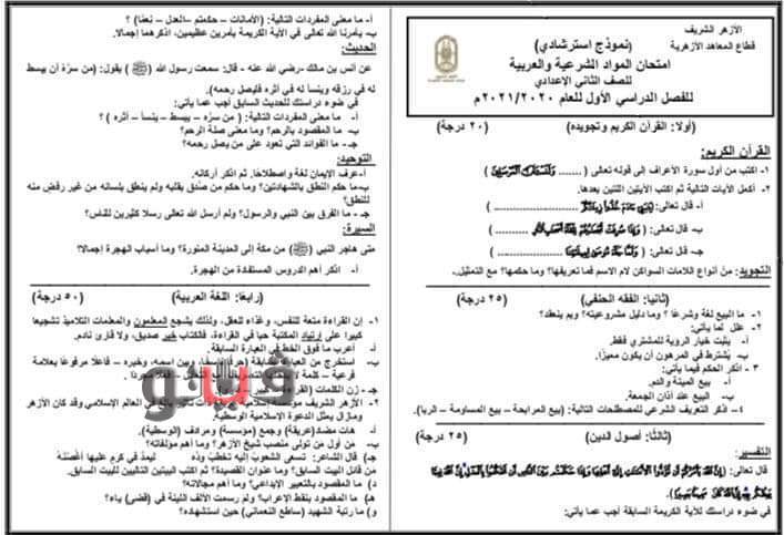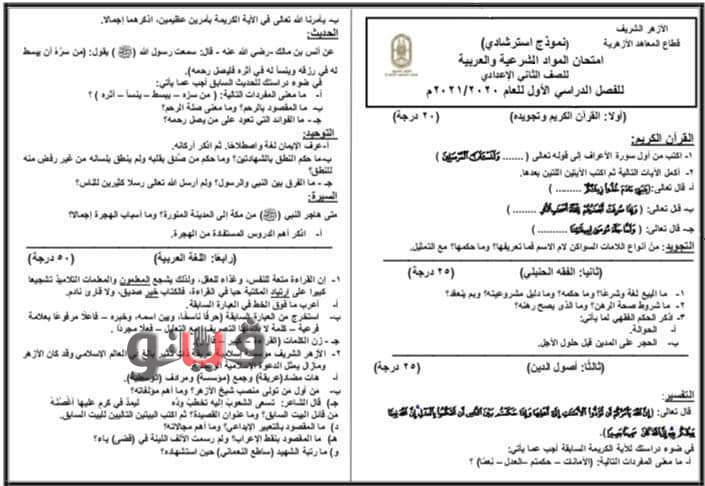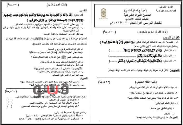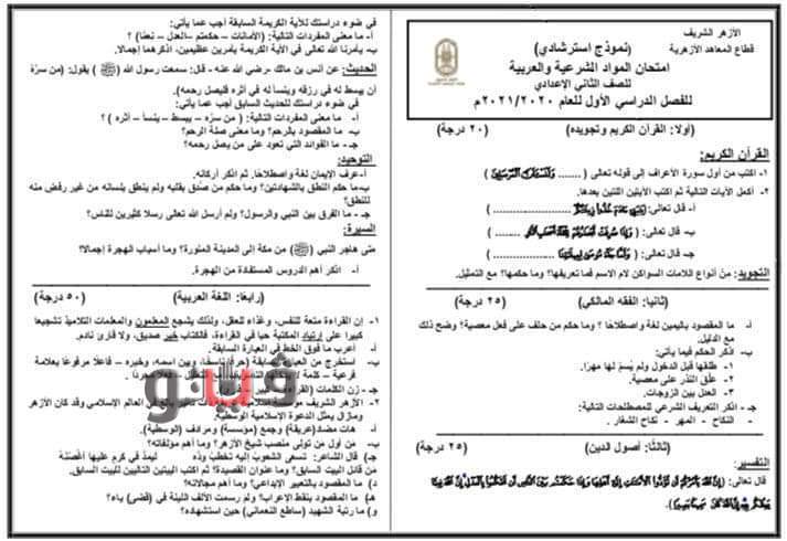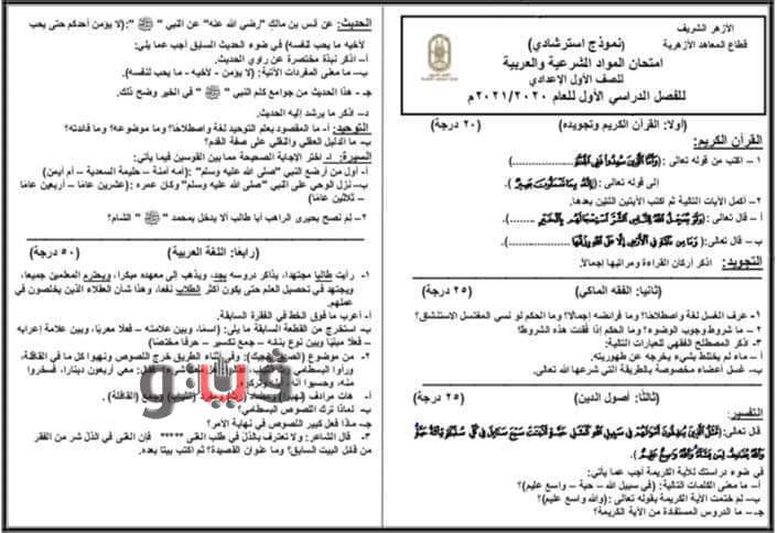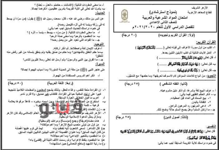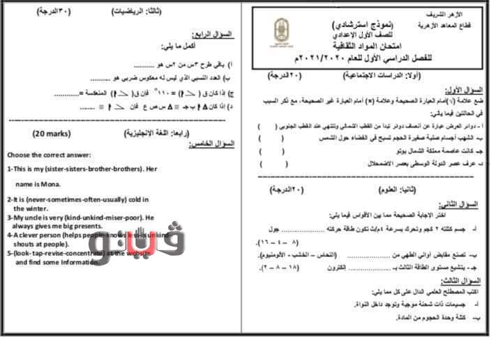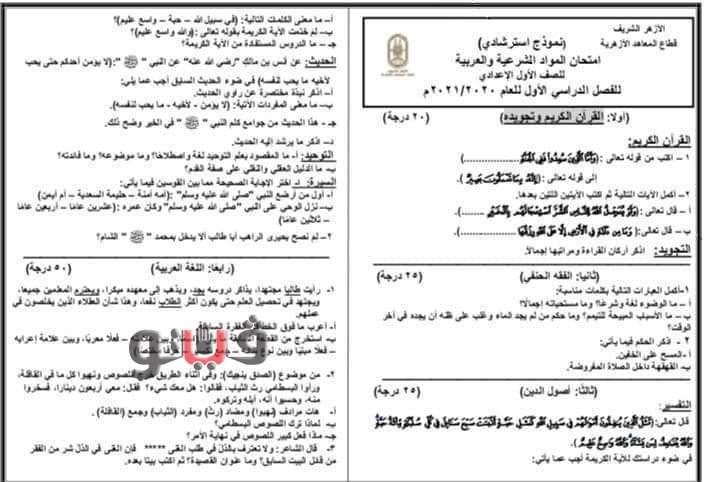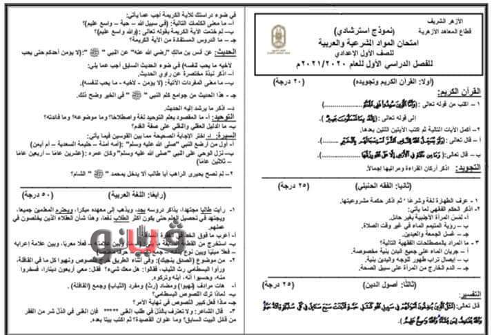 نشر الأزهر الشريف نماذج امتحانات استرشادية لطلاب النقل والشهادة الإعدادية ، استعدادا لامتحانات نصف العام، التي تبدأ في الـ 27 من فبراير الجاري.