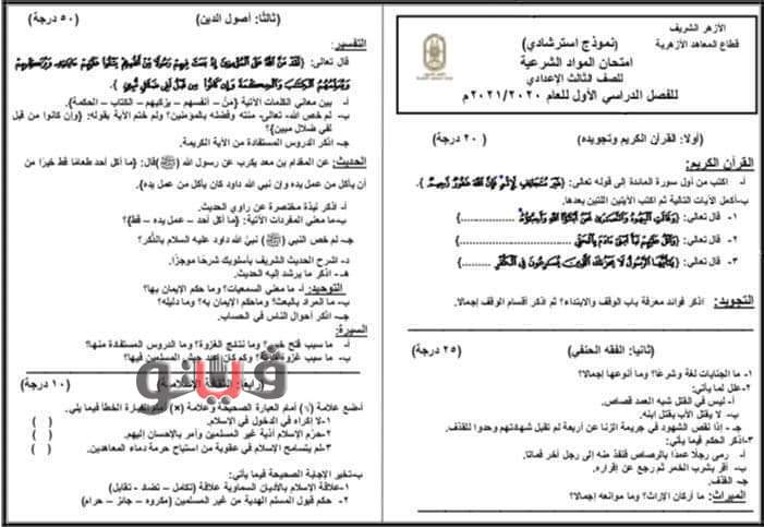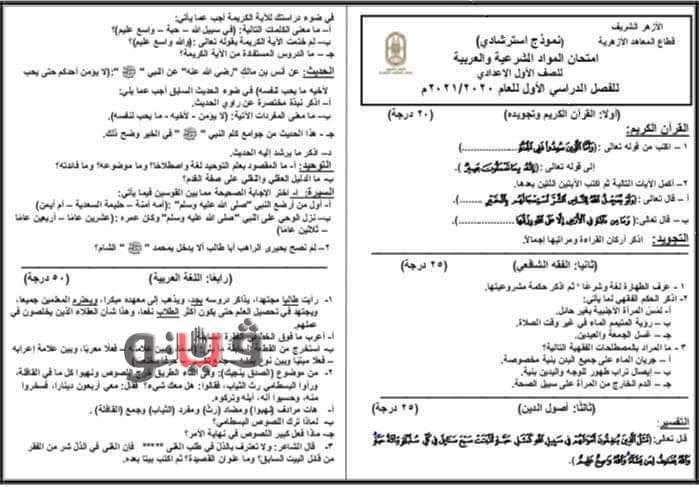 الأزهر ينشر نماذج استرشادية لامتحانات المرحلة الإعدادية
