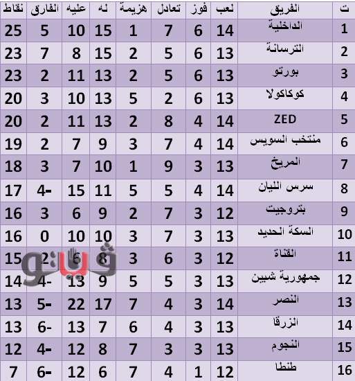 جدول ترتيب دوري القسم الثاني بمجموعة القاهرة والقناة ..الداخلية يتصدر