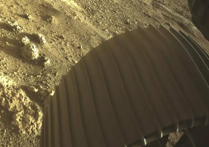 وأظهرت الصور التي أرسلها "بيرسفيرنس" بالألوان لأول مرة من الكوكب الأحمر، ظل العربة على سطح المريخ، حيث تنتشر بعض الصخور، بالإضافة لتضاريس هي أشبه بظل جرف.