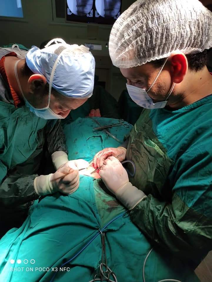 ليتمكن الفريق الطبي المكون من الدكتور وليد عنتر أخصائي جراحة المخ والأعصاب، والدكتور عبد الرحمن أسامة طبيب مقيم الجراحة، والدكتور إيهاب حسن استشاري التخدير، وتمريض العمليات هلال عبد المنعم، وأحمد فتحي، وأحمد محمود، وأحمد حمدي ومحمد عاطف أخصائي الأشعة من تخدير الحالة وإجراء جراحة تثبيت الكسر بالفقرة القطنية الأولي بنجاح.