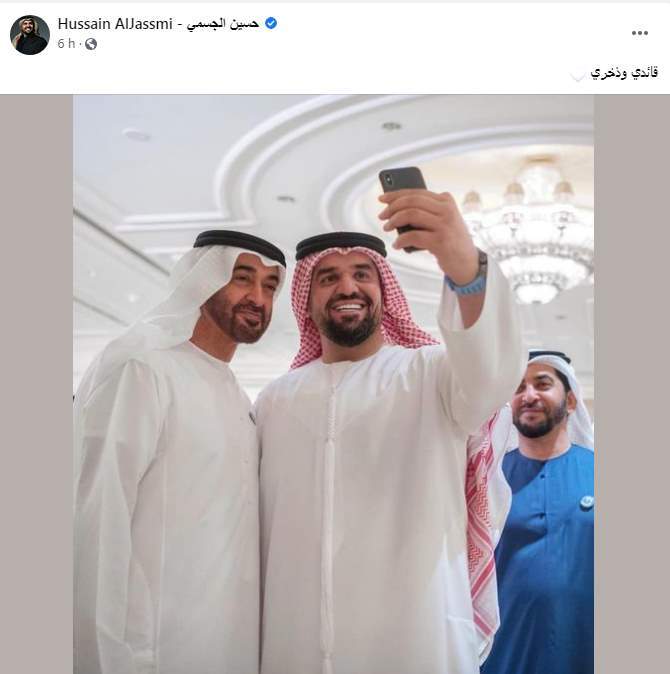 نشر المطرب الإماراتي حسين الجسمي عبر حسابه الشخصي على موقع التواصل الاجتماعي "فيس بوك"، صورة برفقة الشيخ محمد بن زايد، ولي عهد إمارة أبو ظبي.