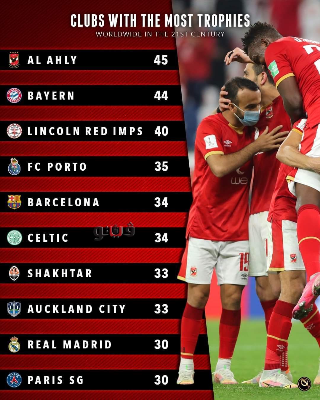 أعلن موقع "جلوب سوكر العالمي" للإحصائيات، احتلال النادي الأهلي، صدارة ترتيب أكثر الأندية تتويجًا بالبطولات في القرن الحادي والعشرين.