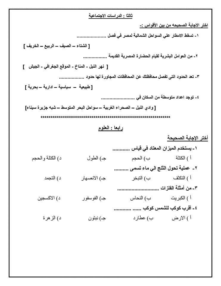 نماذج استرشادية للامتحان الموحد لطلاب الصف الرابع الابتدائي