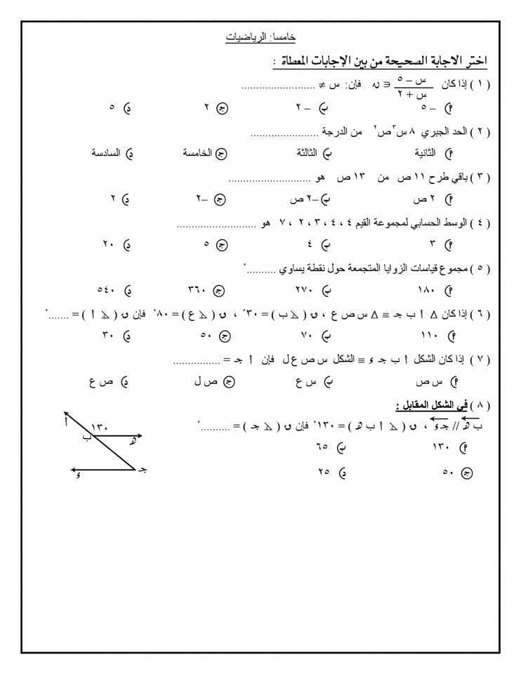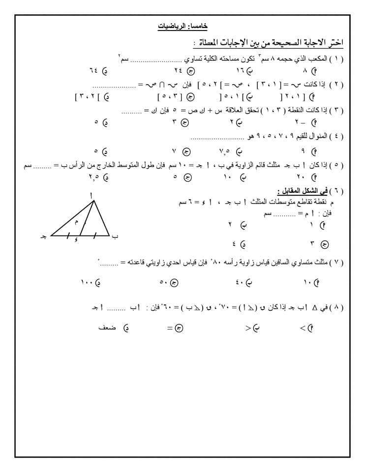 نماذج استرشادية للامتحان الموحد لطلاب الصف الخامس الابتدائي