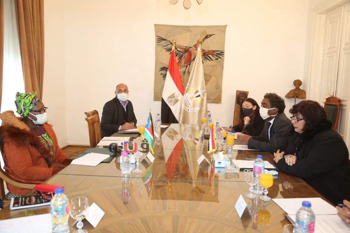 نظيرتها بدولة جنوب السودان لبحث سبل تعزيز التبادل الثقافى والفنى بين البلدين وذلك بحضور ايوم مكور ضيل مساعدة الملحق الإداري بسفارة جنوب السودان بالقاهرة، الدكتور أحمد عواض رئيس الهيئة العامة لقصور