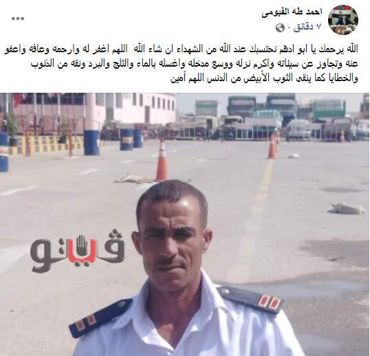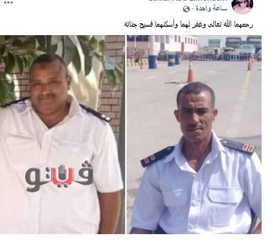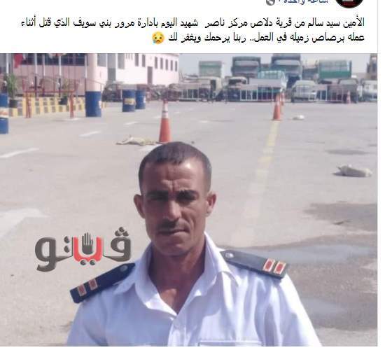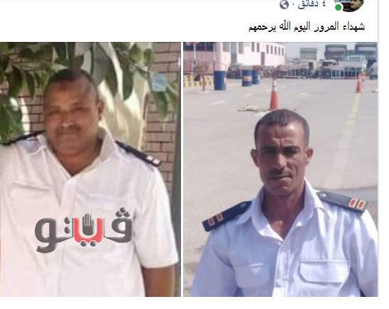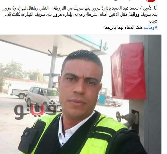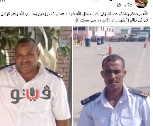 مرور بني سويف، لقيا مصرعهما، اليوم الاثنين، برصاص سلاح زميلهما، سائلين المولى عز