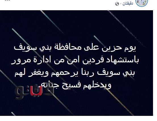 العشرات من أهالي محافظة بني سويف، عبر حساباتهم على "فيسبوك" أميني شرطة بإدارة