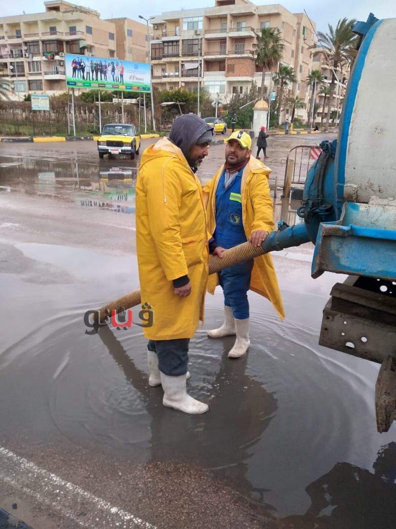 وانتشر مسئولى المحافظة المتمثلة فى الاحياء بالتنسيق مع هئية الصرف الصحى بكافة الميادين والشوارع العامة والدفع بالعديد من سيارات الشفط والدمج وتسير الحركة المرورية أمام السيارات والسائقين ومنع اى تراكمات لمياة الامطار والعمل على ازالتها