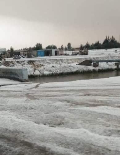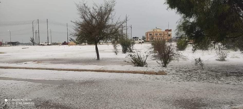 غطت الثلوج مناطق قرية جلبانة التابعة لمحافظة شمال سيناء، بالتزامن مع موجة الطقس السئ التي تشهدها فى ظاهرة هى الأولى من نوعها.