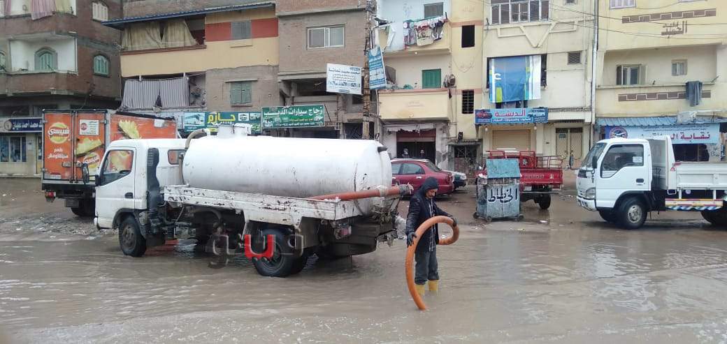رفع تراكمات مياه الأمطار من شوارع البحيرة