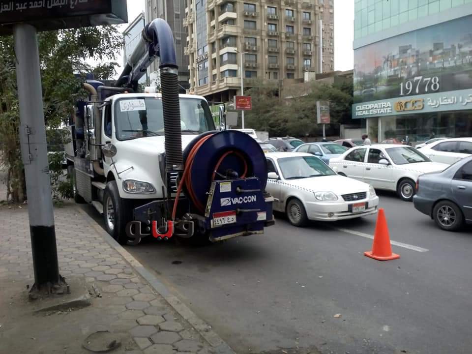 يواصل مسؤولو محافظة الجيزة بإشراف اللواء أحمد راشد شن حملة تطهير بالوعات الأمطار بشارعي مراد بالجيزة والدقي.