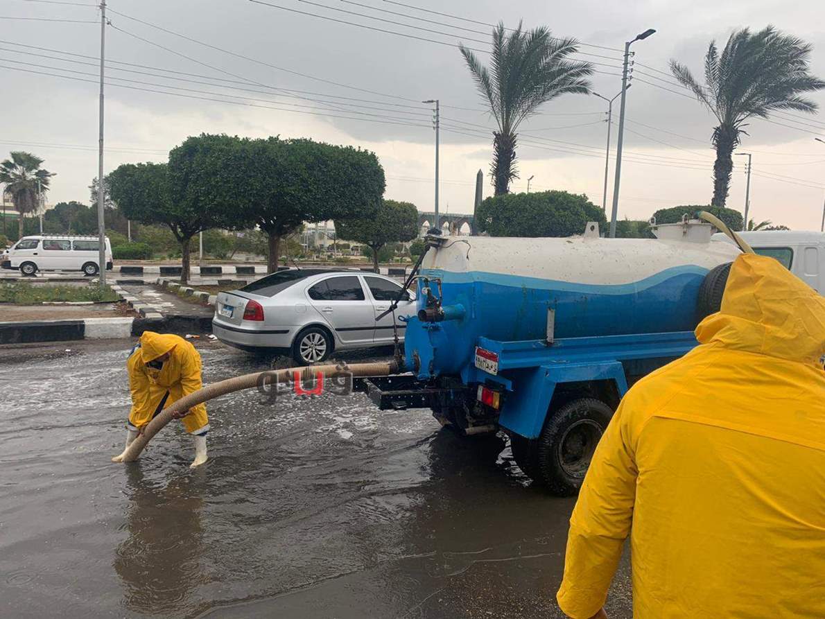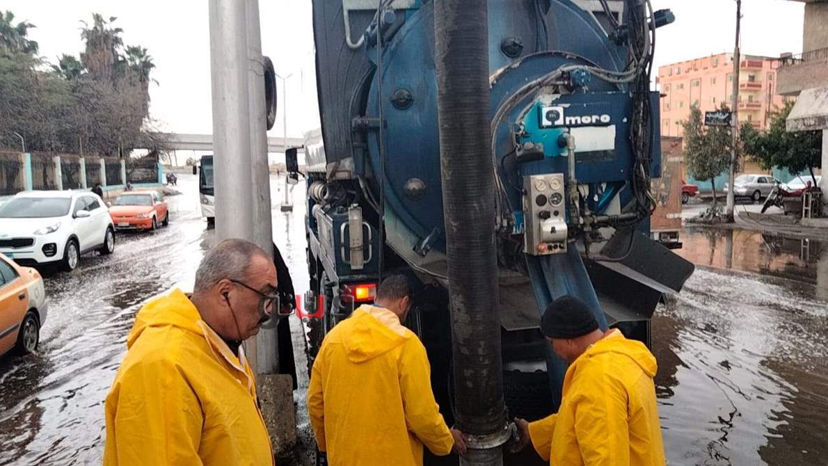 الدفع بفرق التدخل السريع لسحب مياه الأمطار بمحافظات القناة | صور