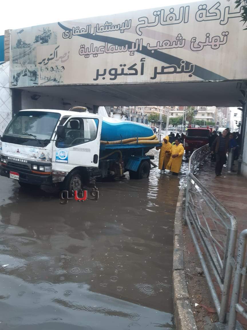 وشهدت مدينة الإسماعيلية سقوط أمطار فى عدد من الشوارع والميادين منها منطقة نفق الممر والتى تم التعامل معها بشكل سريع وتم فتح الطريق أمام السيارات وتحقيق السيولة المرورية، ومنطقة الطريق الدائرى، وجارى التعامل بمنطقة طريق بورسعيد وسحب كميات المياه المتراكمة لفتح الطريق.