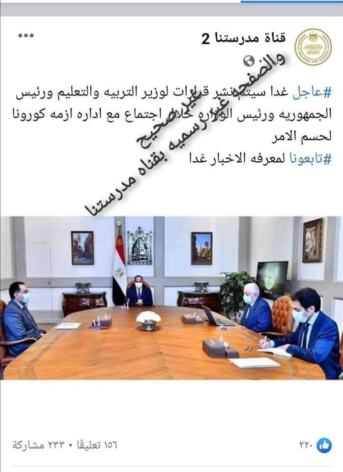 وقال وزير التربية والتعليم في منشوره على الفيس بوك: "احذروا الشائعات، تنتشر هذه الأيام شائعات كثيفة لبلبلة الطلاب وأولياء الأمور في محاولات مستميتة لتعطيل الامتحانات والدراسة".