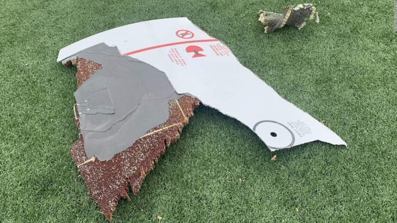 وأظهر مقطع فيديو متداول على موقع التواصل الاجتماعي "تويتر" المحرك وهو يشتعل، فيما أظهرت مقاطع أخرى وصور أجزاء من المحرك وهي تتناثر فوق أحياء سكنية.