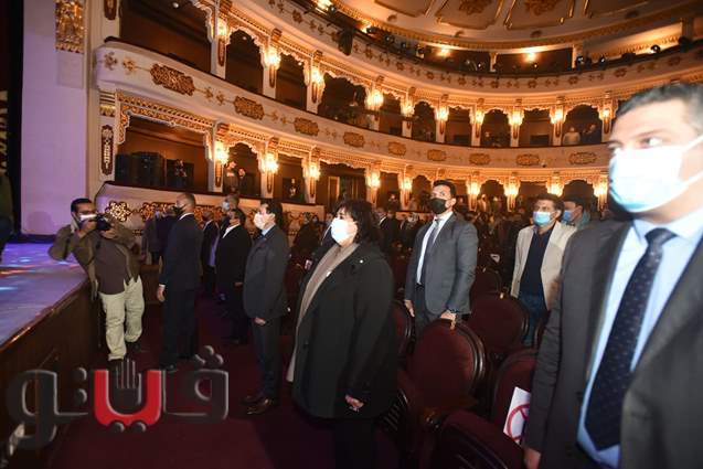 وبدأت الاحتفالية بالسلام الوطني، أعقبه عرض فيلما تسجيليا يستعرض الانجازات التي حققتها فرقة مسرح المواجهة والتجوال منذ تأسيسها كشعبة بفرقة المسرح الحديث عام 2018 حتى الآن.