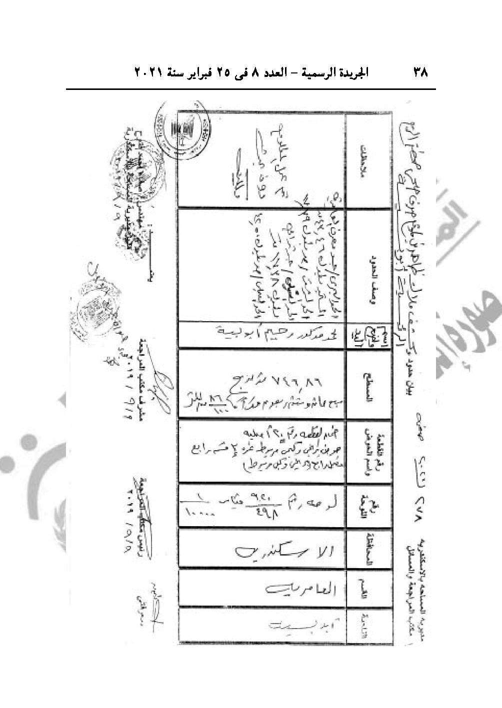 وينص القرار على أنه "يُعتبر من أعمال المنفعة العامة مشروع محطة رفع الصرف الصحي الرئيسية بمنطقة أبو بسيسة - العامرية - محافظة الإسكندرية ، الواقعة ضمن القطعة رقم (20) أصلية بحوض برنجي وكيمي مريوط نمـرة (3) قسم رابـع/ فصل رابع بمساحة (746.86م2) ، وذلك لصالح الجهاز التنفيذي لمياه الشرب والصرف الصحي".