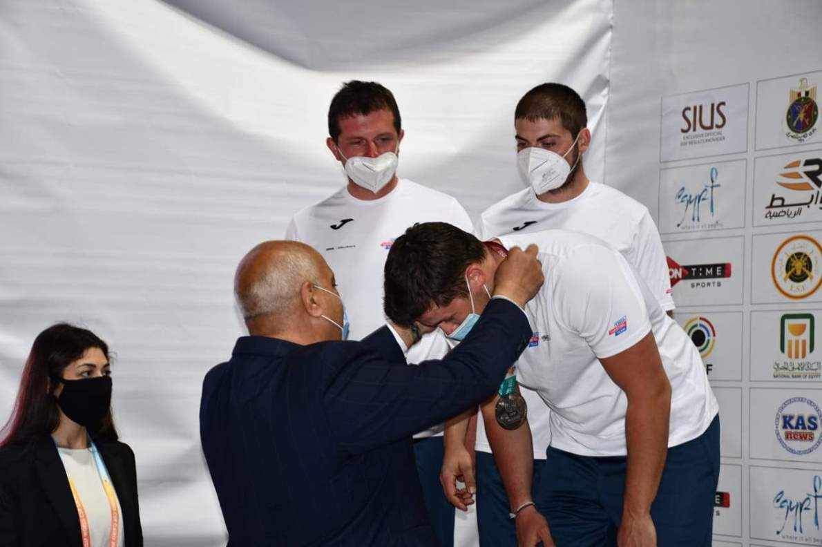 قام ألكسندر راتنر سكرتير عام الاتحاد الدولى للرماية، واللواء حازم حسنى رئيس الاتحاد المصري للرماية بتوزيع جوائز المراكز الثلاثة الأولى على اللاعبين الفائزين بمنافسات الاسكيت "رجال وسيدات" ببطولة كأس العالم للرماية بالخرطوش التي تستضيفها مصر، وذلك حضور بعثات اللاعبين المشاركين بالبطولة بعد انتهاء اليوم الثالث من المنافسات.